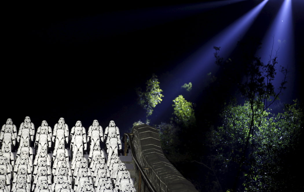 2015年,为了给《星球大战:原力觉醒》的上映造势,数百名风暴兵出现在长城。 JASON LEE/REUTERS