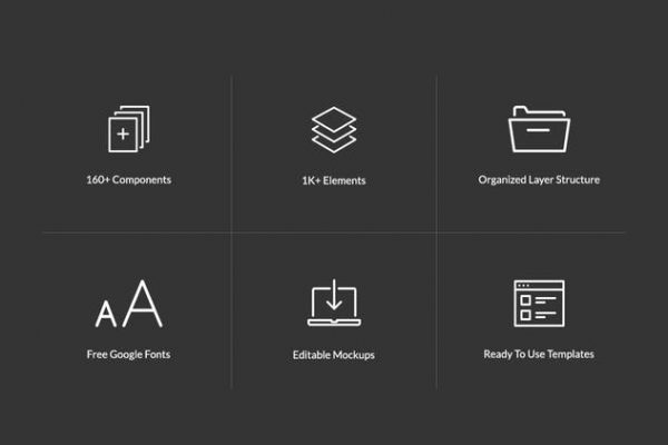 这组网站项目快速启动 UI 套件包由160多个组件,1000多个元素组成,被分为10个流行的类别,它采用Photoshop和Sketch文件格式。