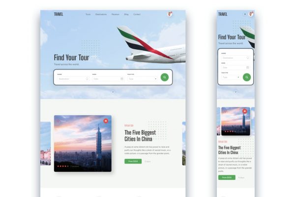响应式旅游主题网站UI设计套件 Travel Responsive Landing Page