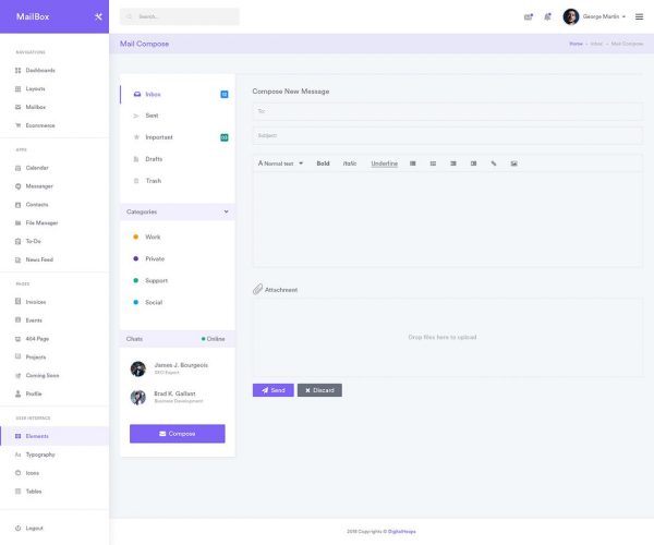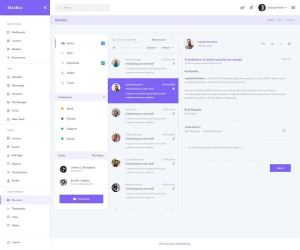 电子邮件Web客户端UI界面设计套件 MailBox Widgets Dashboard UI Kit