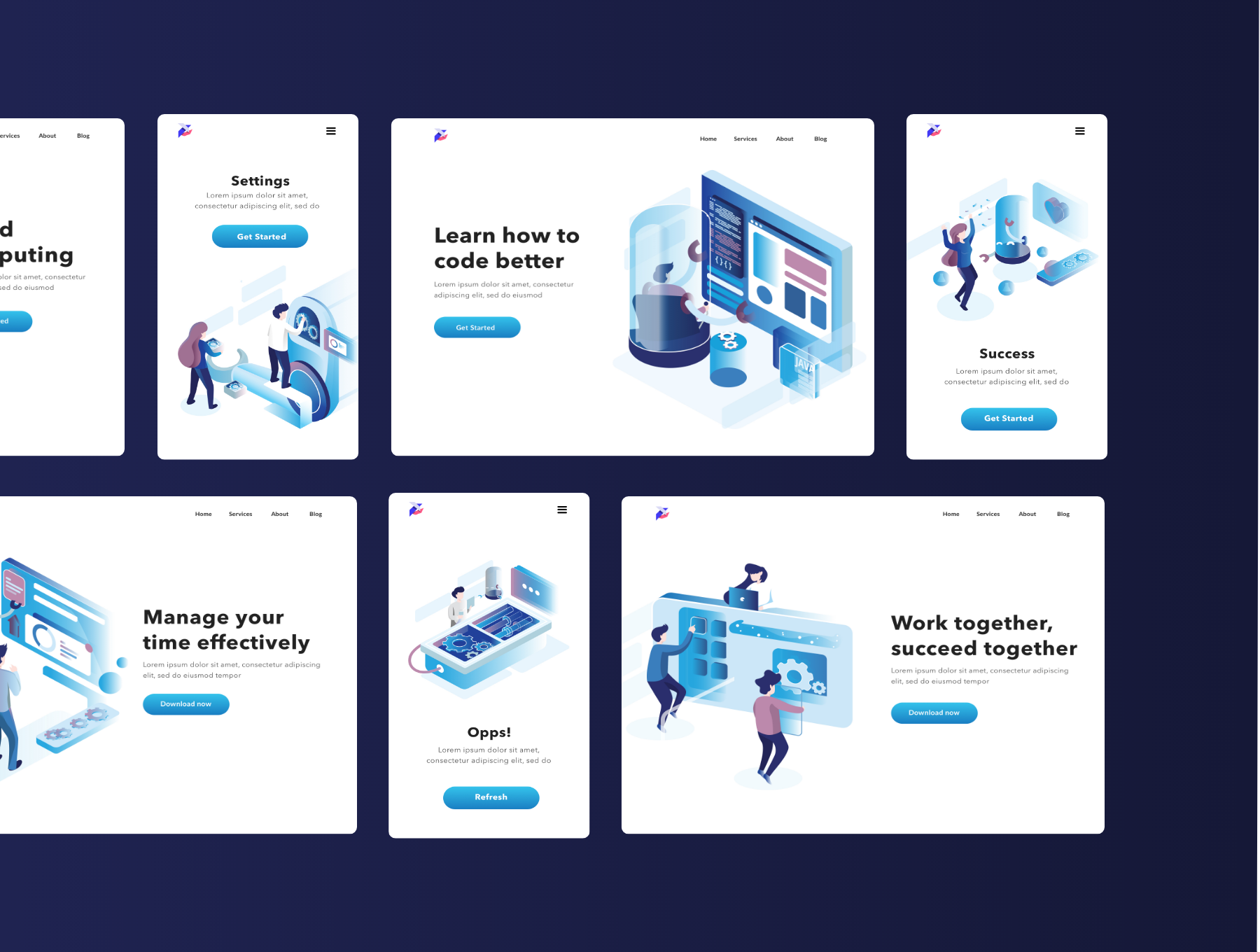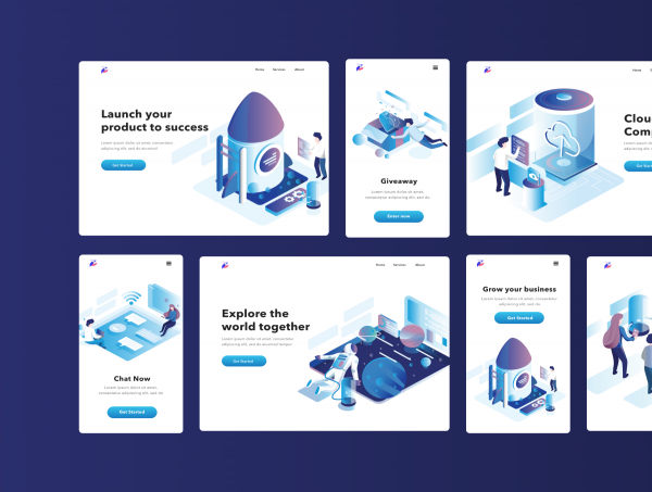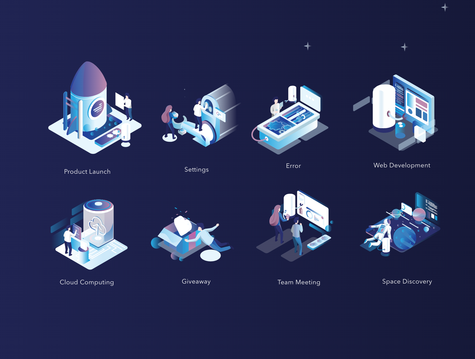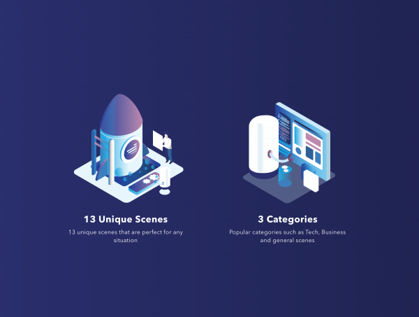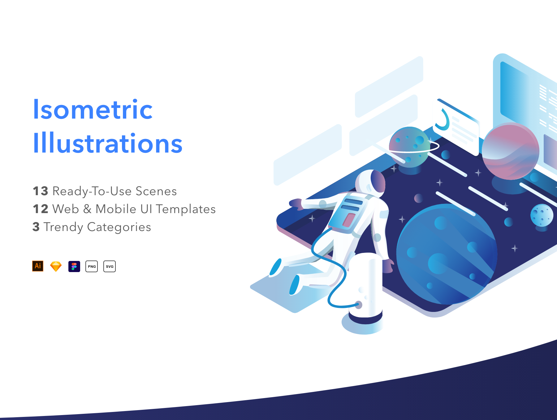 此素材内含13张独特的等距插画,可让任何网站看起来干净专业。创建很棒的登陆页面,项目,新闻通讯和演示文稿。可能性是无止境!基于3个流行类别-科技,商业和常规。所有插画均为100%可矢量缩放,可与Adobe illustrator和Sketch等软件一起使用。 特点: 13个预制场景 12个Web和移动UI模板 100%矢量和可自定义 简约与专业 与Sketch&Illustrator兼容 适用于Web和App
