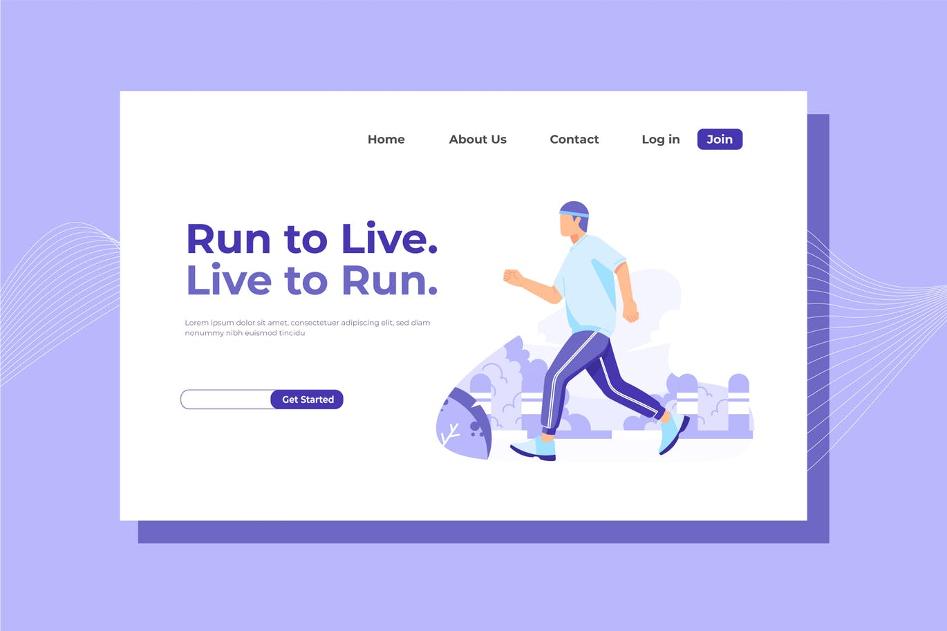 跑步训练主题网站着陆页设计矢量插画 Run to Live Landing Page Illustration