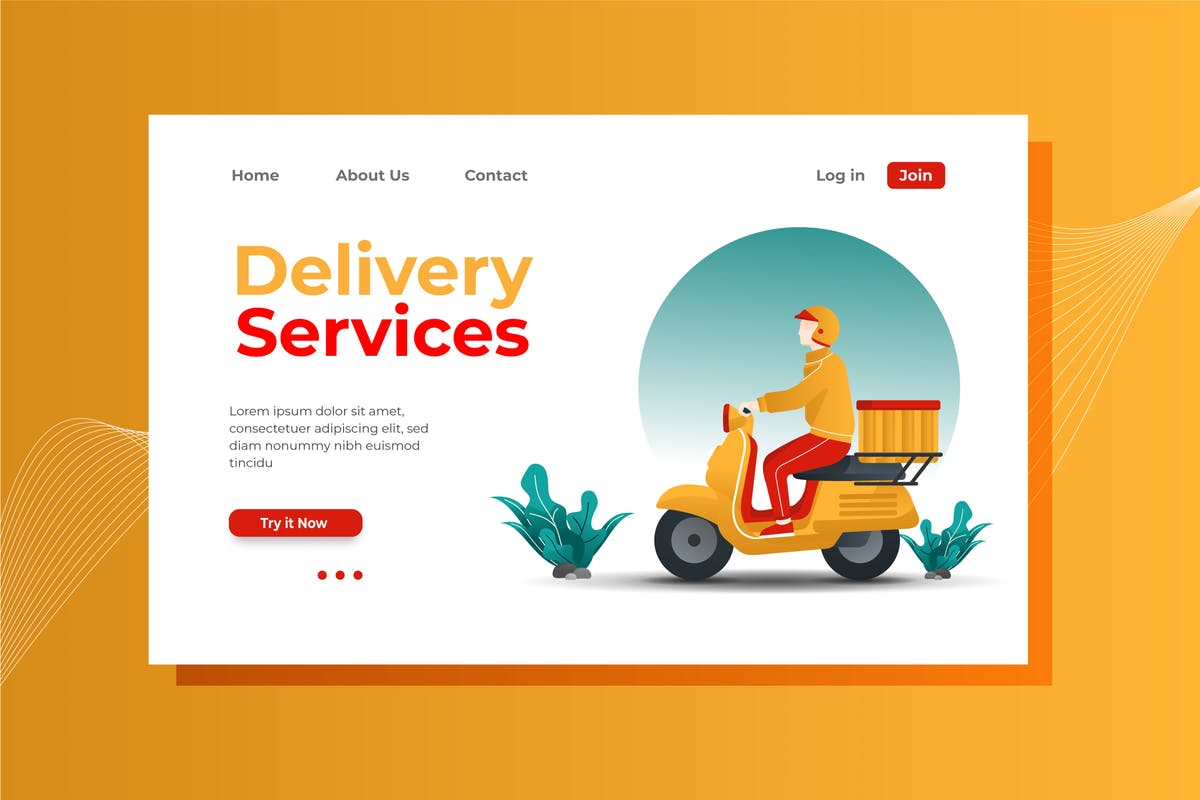 送货服务网站着陆页设计矢量插画 Delivery Service Landing Page Illustration