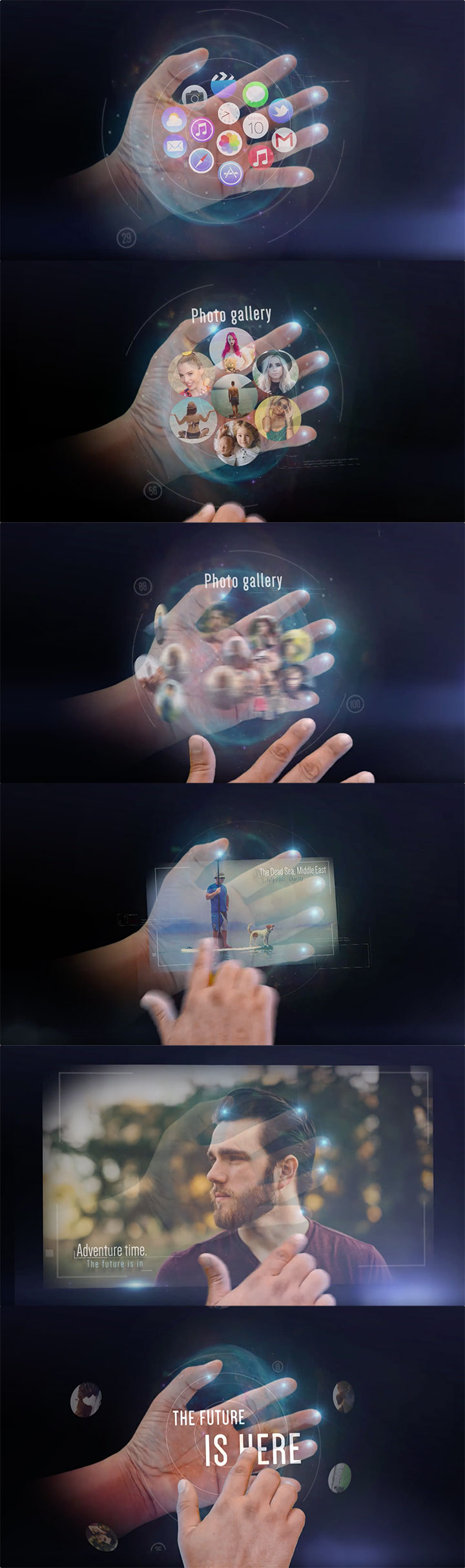 今天分享的是,未来虚拟现实交互模拟特效展示效果视频模版,这也许就是未来的UI趋势吧,以后再也不用带手机,摊开手掌就能进行各种操作,该素材是AE打造,能让你展示一些概念设计,希望对您有用,enjoy!