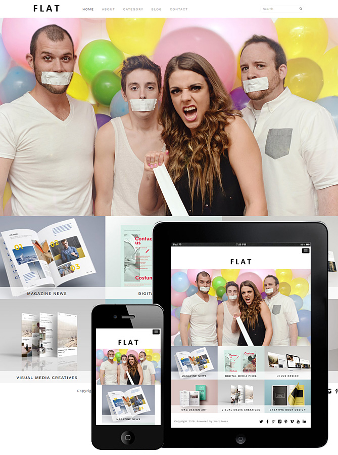 Flat 这款响应式 WordPress 付费主题十分适合用于做产品展示博客网站,尤其是设计类的博客,简约的设计,极简代码开发和响应式,同时兼容桌面和移动浏览器。 首页采用了大幅幻灯片和图片分类设计,少文多图,简单但不失大气。
