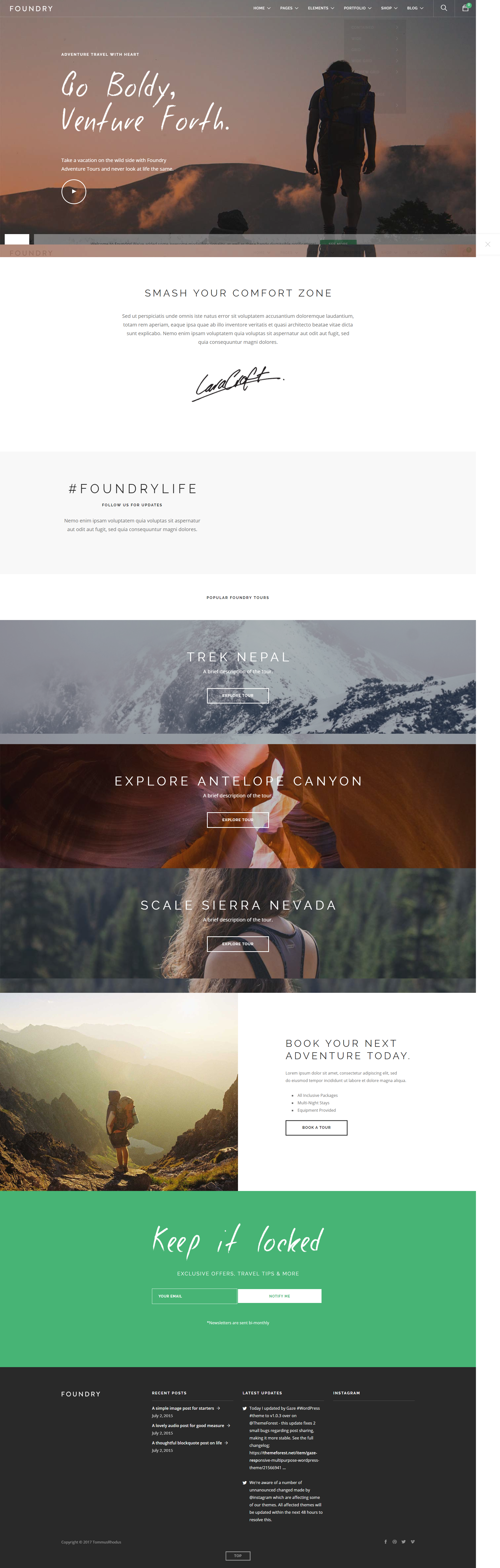 Foundry 采用可视化编辑器和灵活的自定义页面生成器元素加载。此外还有一键设置主题选项,无限的颜色选项,数百款谷歌字体选择等等。Foundry 主题基于 Twitter Bootstrap V3 框架开发,布局适应不同屏幕尺寸,确保您的网站在所有设备上显示完美。