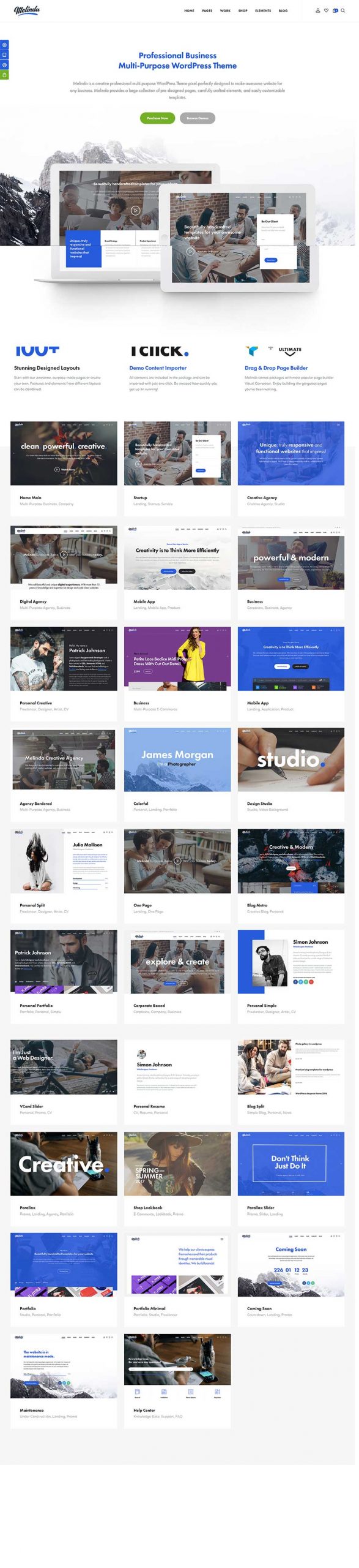 强烈推荐:多用途 WordPress 主题 Melinda – Multi-Purpose WordPress Theme(50+页面布局)