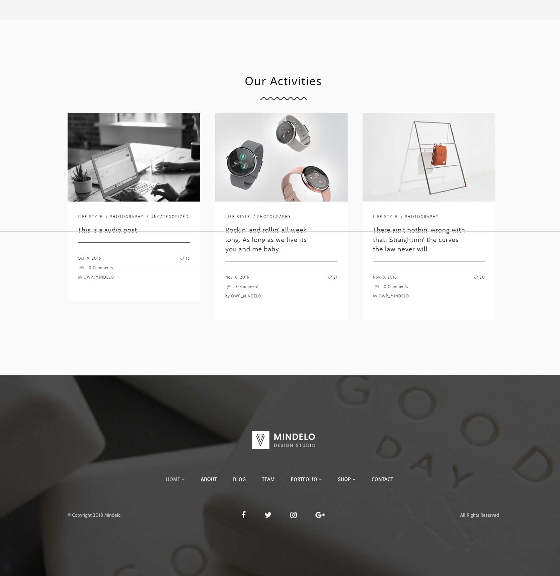 Mindelo 是一款非常简约大方的 WordPress 主题,支持 Portfolio、电子商务,功能强大,自带 Visual Composer、Contact form 7 及即时页面编辑等。
