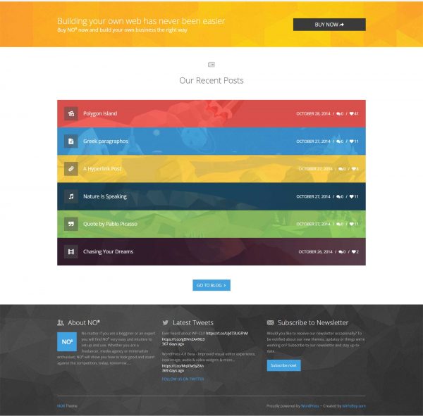 No8 是一个创意十足的 WordPress 主题,干净利落的设计,抽象多边形设计显得你的网站独特极具个性,迅速抓取访客的眼球,适合创意产品展示。