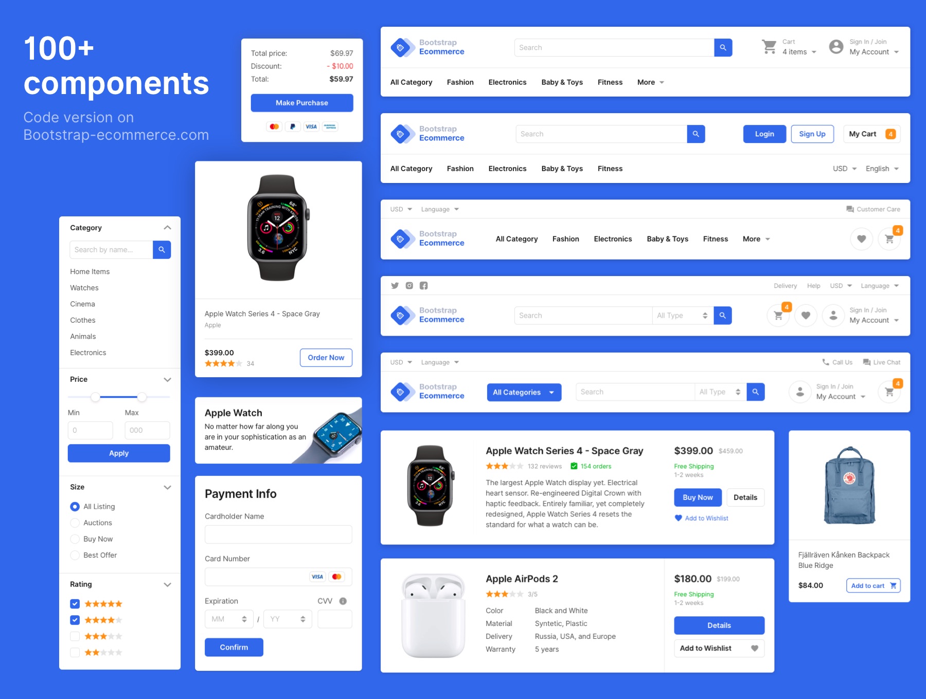 用于Bootstrap 4的电子商务项目的电子商务代码UI套件。此套件带有清晰编码的文件以及HTML,CSS和SASS中的文件。在任何电子商务项目中都是完全可定制的,易于使用和易于实现的。