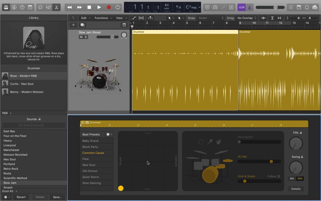 使用Drummer就像雇用会议鼓手或与高技能的节拍程序员合作。使用Drummer的智能技术创建有机声音的声学鼓轨道或电子节拍。从几十个鼓手中选择,每个鼓手都使用不同的音乐类型,并使用简单的控件指导他们的表演。