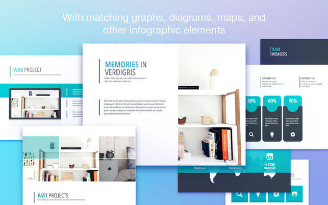 Keynote的布局是由Jumsoft设计团队为您的独特幻灯片创建的100多个主题的集合。使用时尚的背景、图表、图表、表格和其他数据可视化元素来增强它们,以获得您所有的工作。每个主题包含至少20个主幻灯片,涵盖从基本项目布局到复杂图表和插图的所有内容。所有照片幻灯片都具有媒体占位符,可以整齐地裁剪放置的图像,并且可以轻松编辑大多数可视化元素。